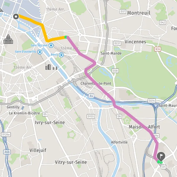 | Distance en transports en commun | 11,1 km à 11,3 km |