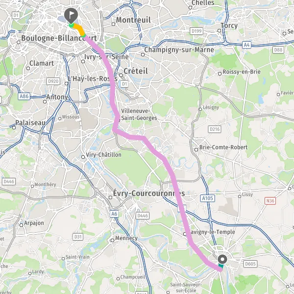 | Distance en transports en commun | 45,1 km à 47,6 km |