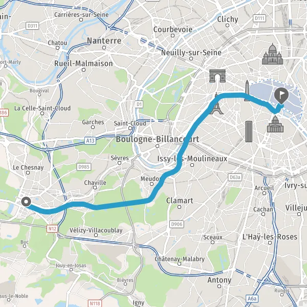 | Distance en transports en commun | 17,6 km à 17,9 km |