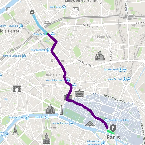| Distance en transports en commun | 6,0 km à 7,6 km |