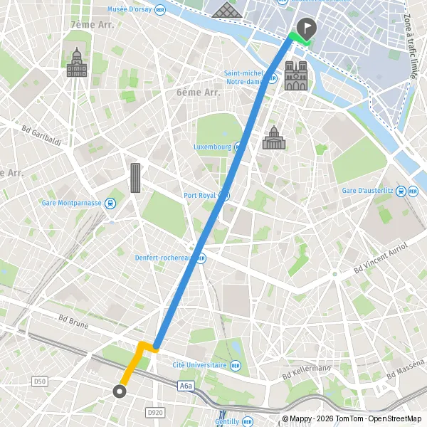 | Distance en transports en commun | 4,9 km à 5,5 km |