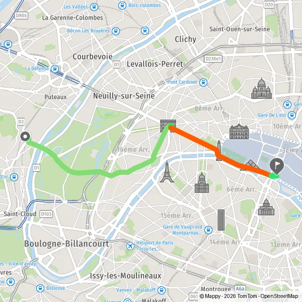 | Distance en transports en commun | 10,4 km à 12,6 km |