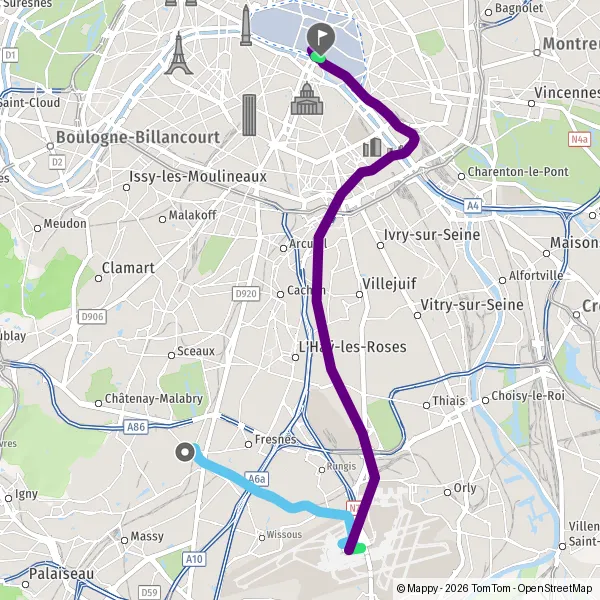 | Distance en transports en commun | 12,2 km à 13,7 km |