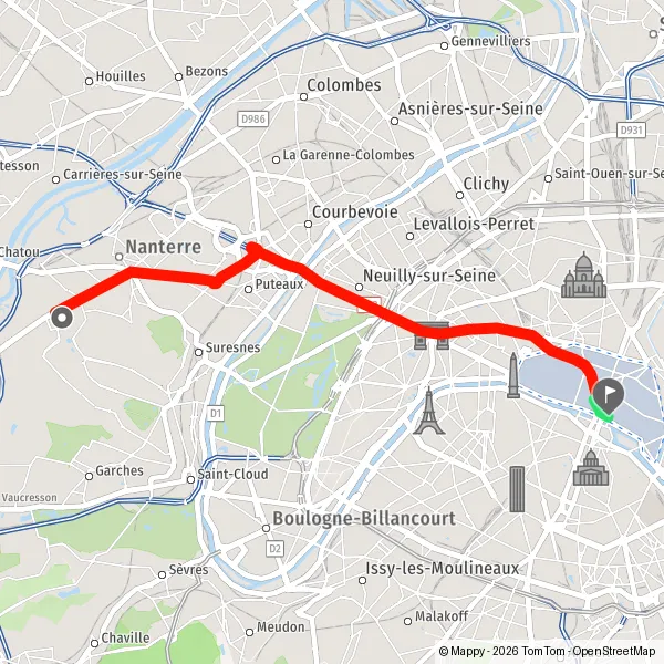 | Distance en transports en commun | 15,2 km à 15,8 km |