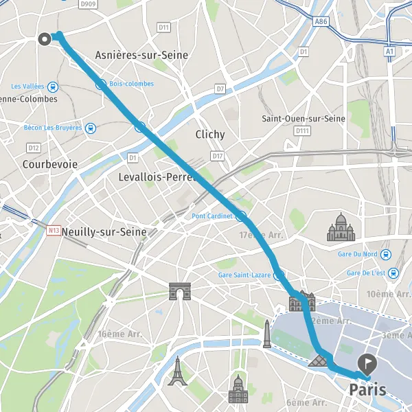 | Distance en transports en commun | 10,4 km à 11,9 km |