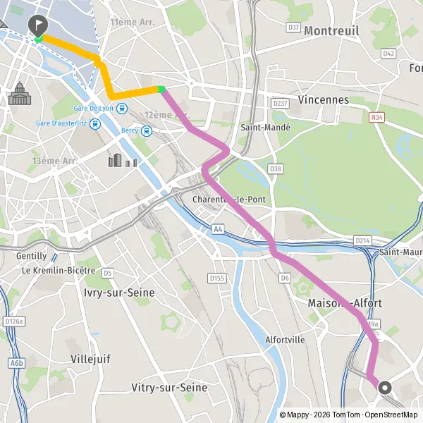 | Distance en transports en commun | 11,1 km à 15,2 km |