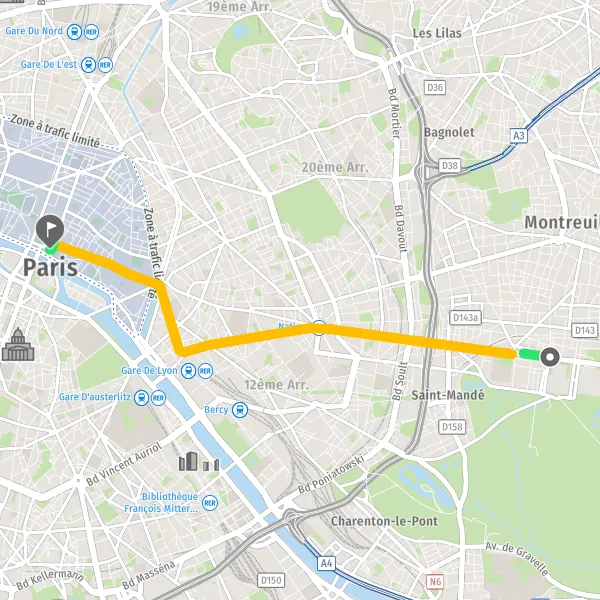 | Distance en transports en commun | 6,3 km à 7,4 km |
