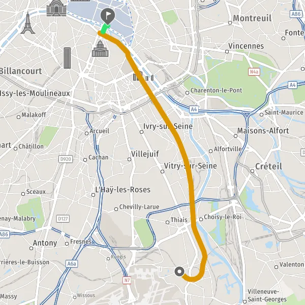 | Distance en transports en commun | 14,6 km à 15,1 km |