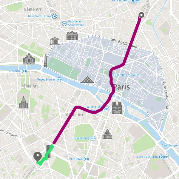 | Distance en transports en commun | 5,4 km à 6,1 km |
