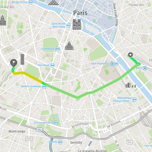 | Distance en transports en commun | 5,5 km à 7,3 km |