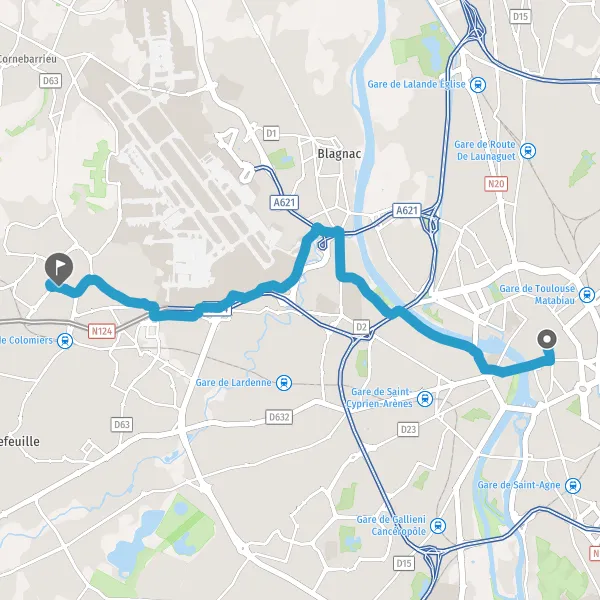 Prendre à droite la piste cyclable Route de Bayonne et continuer sur 190 mètres