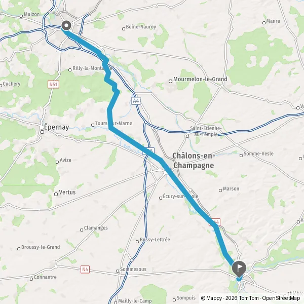 Prendre légèrement à droite Faubourg de Châlons et continuer sur 350 mètres