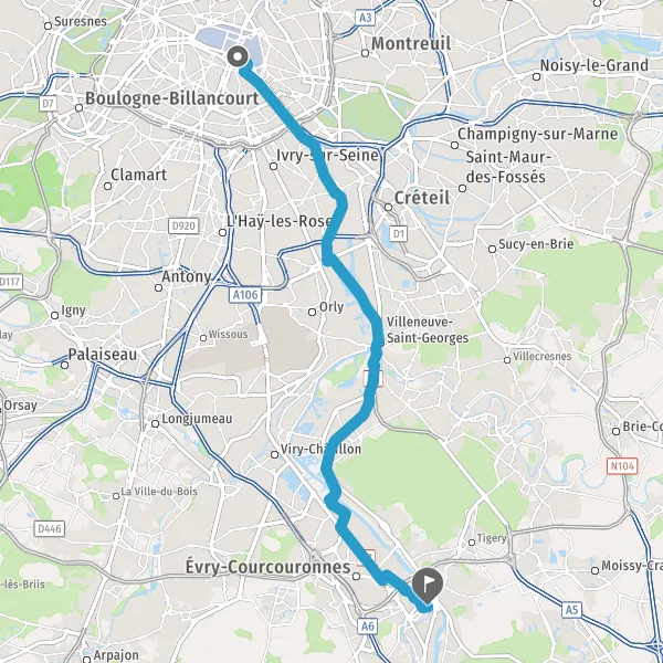 Prendre à gauche Chemin du Bac de Ris-Orangis et continuer sur 1,2 kilomètre