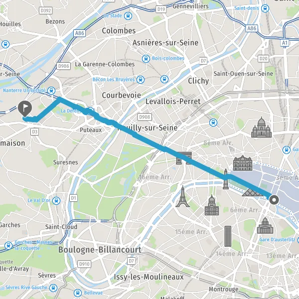 Prendre à droite la piste cyclable Rue de Courbevoie et continuer sur 190 mètres