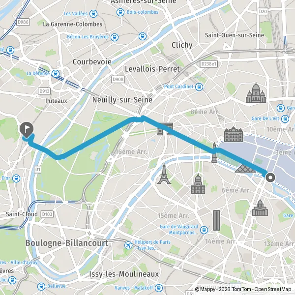 Prendre à gauche la piste cyclable Rue de Rivoli et continuer sur 2,0 kilomètres