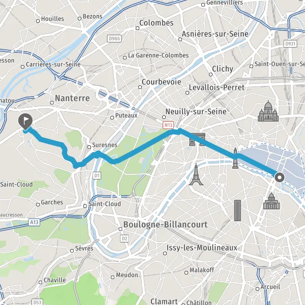 Prendre à gauche la piste cyclable Route de Suresnes et continuer sur 750 mètres