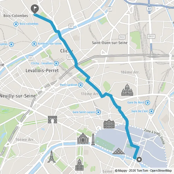 Prendre à gauche la piste cyclable Avenue de Clichy et continuer sur 850 mètres