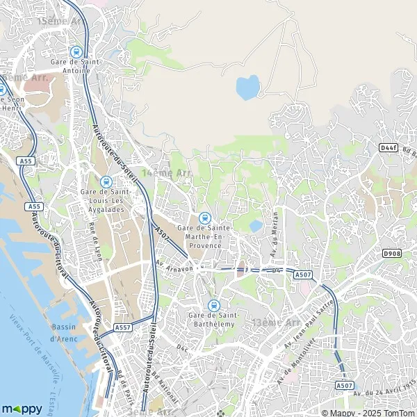 Le 14e arrondissement de Marseille, le plus grand de la ville, est composé de sept quartiers : Les Arnavaux, Bon-Secours, Le Canet, Le Merlan, Saint-Barthélémy, Saint-Joseph et Sainte-Marthe. Le quartier de Saint-Barthélémy est, après le quartier Sainte-Marguerite dans le 9e arrondissement, le deuxième quartier le plus peuplé de la ville avec 18 274 habitants en 2010. Le Canet, quant à lui, est célèbre pour son histoire formée autour de l'église Notre-Dame de l'Espérance. De son cimetière, on peut apercevoir la mer qui est dominée par le mausolée Vanverberghe dans lequel repose Francis le Belge, l'un des plus célèbres parrains marseillais.